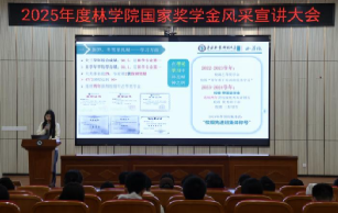 11月21日,林学院顺利举办2025年度国家奖学金风采宣讲大会。会议特邀四位2024-2025年度国家奖学金获得者进行经验分享,旨在帮助同学们明确学业方向、掌握高效学习方法,充分发挥优秀学子的榜样引领作用。