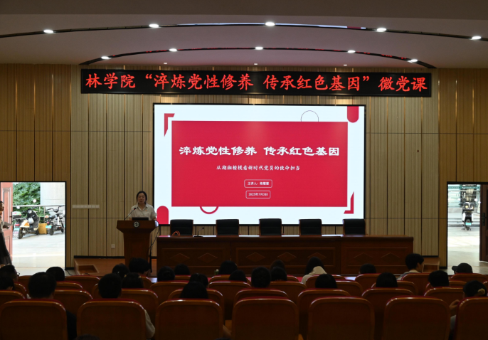 首先,学院党委副书记陈慧慧同志在林学院报告厅为研究生党员讲授《淬炼党性修养 传承红色基因》微党课。她紧扣作风建设与使命担当,结合廖家月等湖湘楷模扎根基层、无私奉献、清正廉洁的先进事迹,指出研究生党员要筑牢忠诚之魂,校准科研航向,服务国家战略;练就过硬本领,深入实践、求真务实;勇于创新实践,攻坚克难、锐意进取;厚植为民情怀,厉行节约、甘于奉献,将优良作风融入科研报国实践。