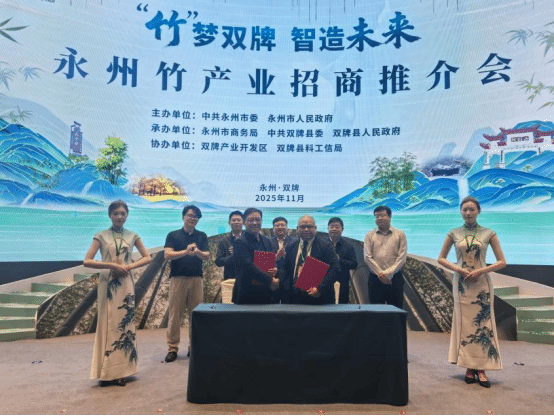 2025年11月7日,中南林业科技大学林学院与马来西亚Furnique Woodcraft Sdn Bhd及Sie Puoi Chang Construction Sdn Bhd两家公司在长沙正式签署战略合作协议,标志着双方在“一带一路”共建国家推动竹产业全产业链国际合作迈出重要一步。签约仪式在中南林业科技大学举行,林学院副院长李家湘教授与马来西亚Furnique Woodcraft、Sie Puoi Chang Construction两家公司董事长施聚仁(SIE SHWEE ING)分别代表双方签署协议。签约仪式由中南林业科技大学科学研究部部长卿彦、林学院院长袁德义、双牌县常务副县长李广军以及中南林业科技大学院士工作办公室主任蔡旭伟等领导共同见证。