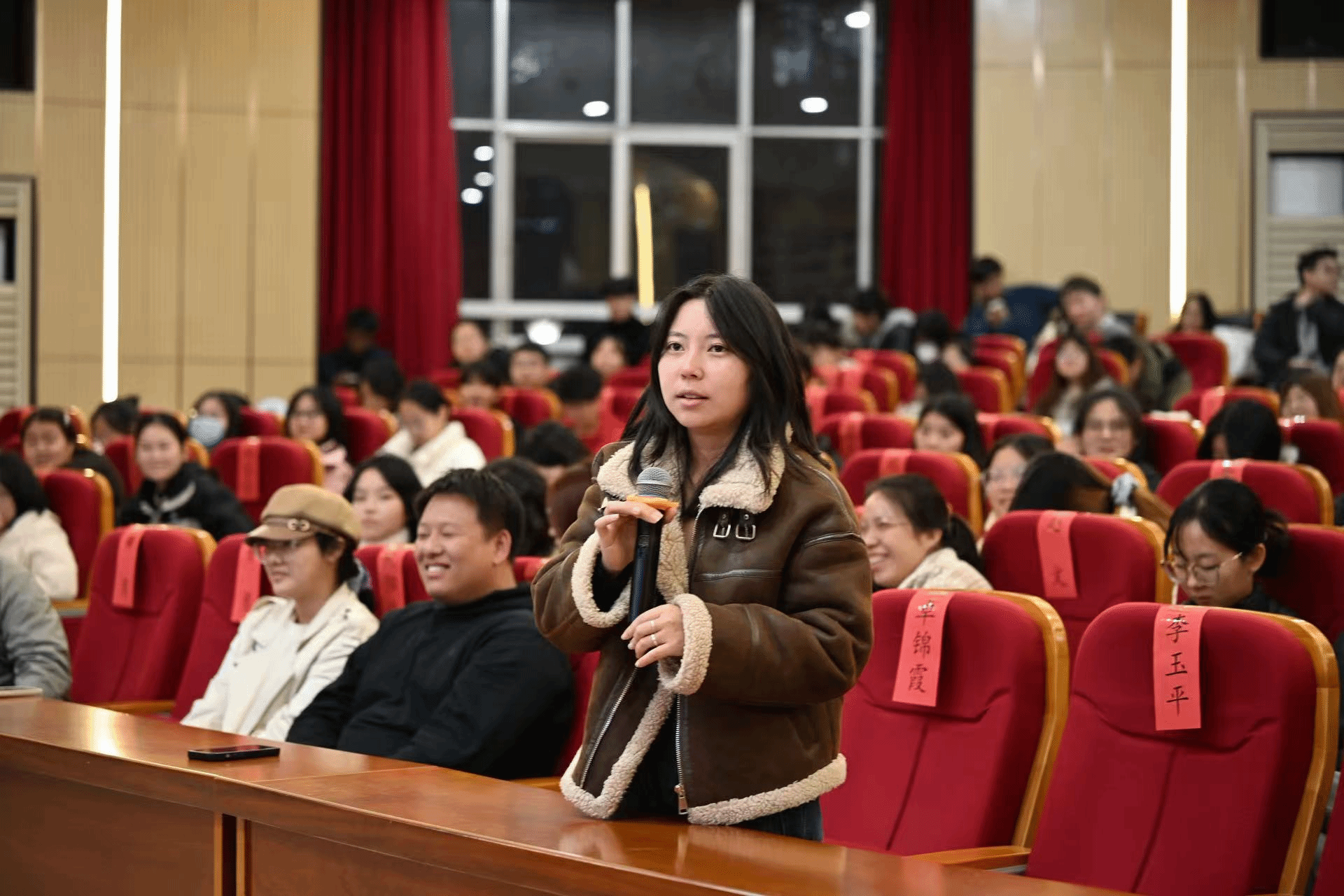 互动环节,同学们踊跃提问,围绕 “学生如何迈出创业第一步”“跨学科融合在创新中的作用” 等话题与主讲人深入交流。武博士勉励青年学子夯实专业根基,勇于试错、善于协作,在实践场景中锤炼解决问题的能力。