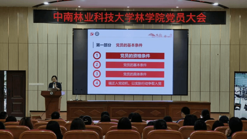 2025年9月25日下午,林学院在树木楼一楼报告厅001召开党员大会,传达学习《关于省委第一巡视组进驻情况的通报》,安排部署相关工作,并就加强党员队伍建设、规范党员发展程序等内容开展专题学习。学院党委书记孙华、党委副书记陈慧慧出席会议,全体教工党员、学生党支部委员及学院初心党建工作室成员参加会议。