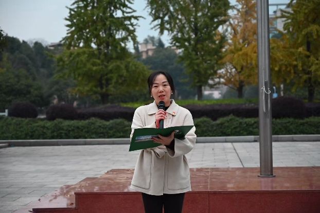 升旗仪式后,学院党委副书记陈慧慧发表讲话。她指出,林学学子选择了林学专业,就是与祖国立下了守护绿水青山的约定;学生党员胸前的党徽,不仅代表着身份,更意味着“早一步、多做点”的责任担当。她强调,要把党员的初心写在山林里、融在生态中,让“党员”两个字在林学事业中熠熠生辉,让“红韵”照亮更多青年的成长之路。