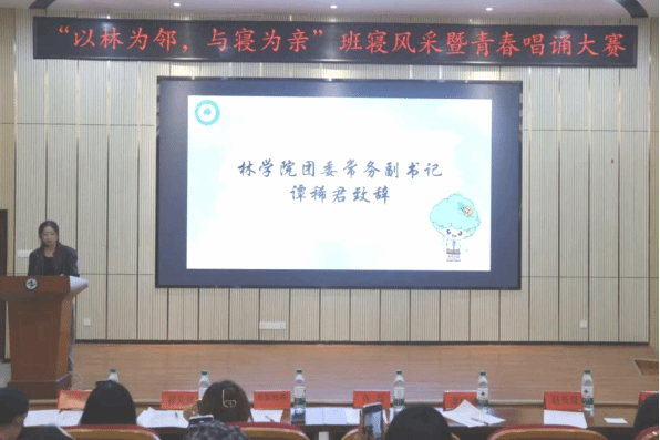 为帮助2025级新生提升班级协作能力、增强团体意识,11月2日晚7点,林学院于报告厅举办“以林为邻,与寝为亲”班寝风采暨青春唱诵大赛。2025级辅导员许磊、林学院团委学生会主席团以及全体2025级本科新生参与本次活动。