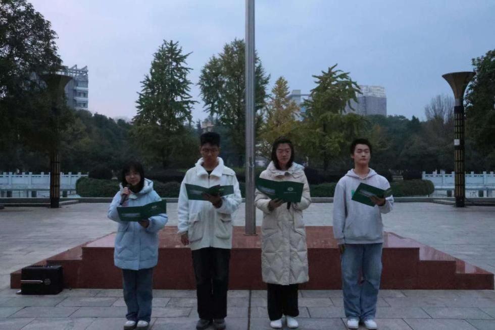 11月24日早上,我院在陶铸广场举行以“家国之情浸润心灵,青春之志铸梦想”为主题的“国旗下的誓言”爱国主义教育活动。学生工作部、武装部副部长齐一天、林学院党委副书记陈慧慧、学生工作部、武装部许佳、学院全体辅导员、学生党员以及2025级全体学生600余人参与此次活动。