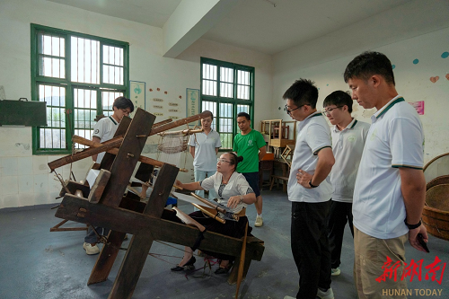 实践团还前往皇都村、芋头村、上岩村的古侗寨,聚焦“侗族非遗”与“侗乡文旅产业发展”,考察侗族文化当代生存图景,系统调研侗族建筑文化、民俗节庆、非遗技艺及乡村振兴成果。通过问卷调研与入户访谈,收集了群众对文旅融合、产业发展的建议;在非遗展示馆,团队成员沉浸式体验了侗族文化魅力,了解了侗布纺织与印染、聆听了侗族耶歌、观看了芦笙制作与演奏等传统技艺,学习了电商销售等现代营销模式,同时还见证了湖南省劳模现场演示侗锦“通经断纬”织造技艺,讲解“图必有意,纹必吉祥”文化内涵。