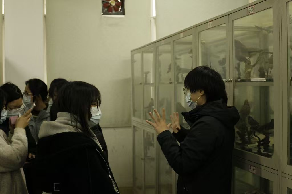 在动物标本实验室,同学们看到了丰富的动物标本收藏,通过互相讲解与示范,学习了动物标本的制作方法与技术原理,深入了解了不同动物的生态习性与生物学特征,拓宽了生物学知识面。