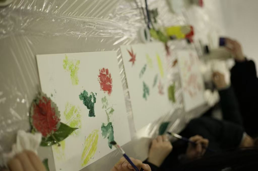 ▲树叶拓印创意实践活动