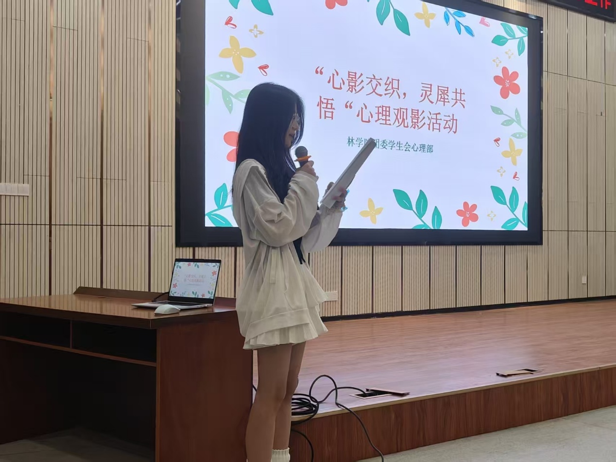 4月15日晚,我院在林学院报告厅举办了“心影交织,灵犀共悟”心理观影活动。本次活动旨在通过光影艺术引导同学们关注心理健康,探寻自我与家庭、梦想之间的平衡。
