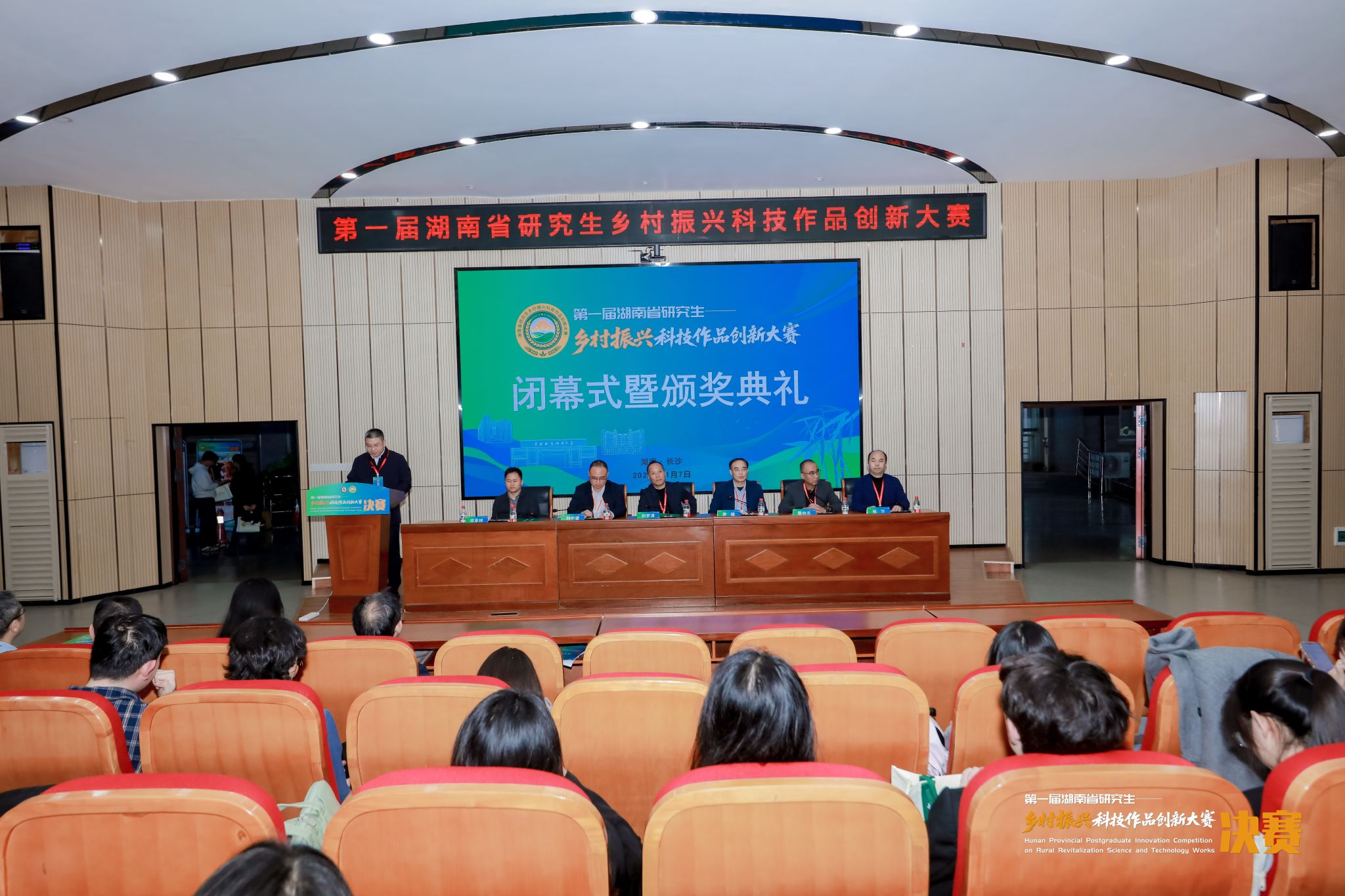 11月7日,第一届湖南省研究生乡村振兴科技作品创新大赛闭幕式暨颁奖典礼在中南林业科技大学林学院报告厅落幕。赛事由省教育厅主办、中南林业科技大学承办,林学院具体实施。省教育厅学位管理与研究生教育处二级调研员刘梦清、省林业局科学技术与国际合作处处长黄向东、省林业局科学技术与国际合作处副处长张华、省农业农村厅科技教育处主任邓享棋、湘潭大学副校长刘中望、中南林业科技大学副校长尹健、林学院领导班子成员出席颁奖典礼暨闭幕式,学校研究生院院长邝祝芳主持典礼。