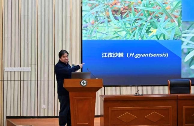 在本次报告中,张建国研究员围绕沙棘属植物的地理分布及扩张路径、起源时间、分类系统三大核心议题,结合自身研究经验,融入胡颓子科植物化石考证、青藏高原起源演化等背景知识,对柳叶沙棘、江孜沙棘等代表性物种进行阐释。报告重点探讨了分类基因组学研究、地理分布格局演化等前沿科学议题,同时指出了沙棘属植物分类工作量繁杂、国际合作缺乏专职研究人员对接的现实难题,并给出了优先选取具有经济或生态价值的类群开展深度研究、而非盲目全面铺开的专业建议,为现场听众呈现了一场兼具学术深度与实践价值的精彩分享。